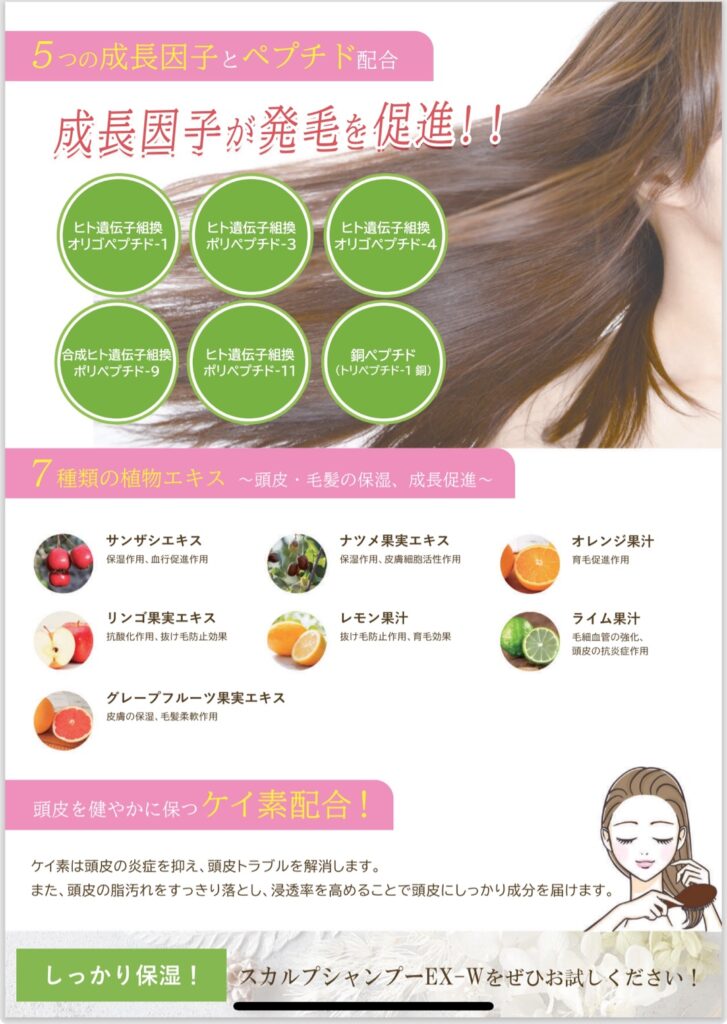 そこでおすすめなのが、当店オリジナルの 「スカルプシャンプーEX-W」です。