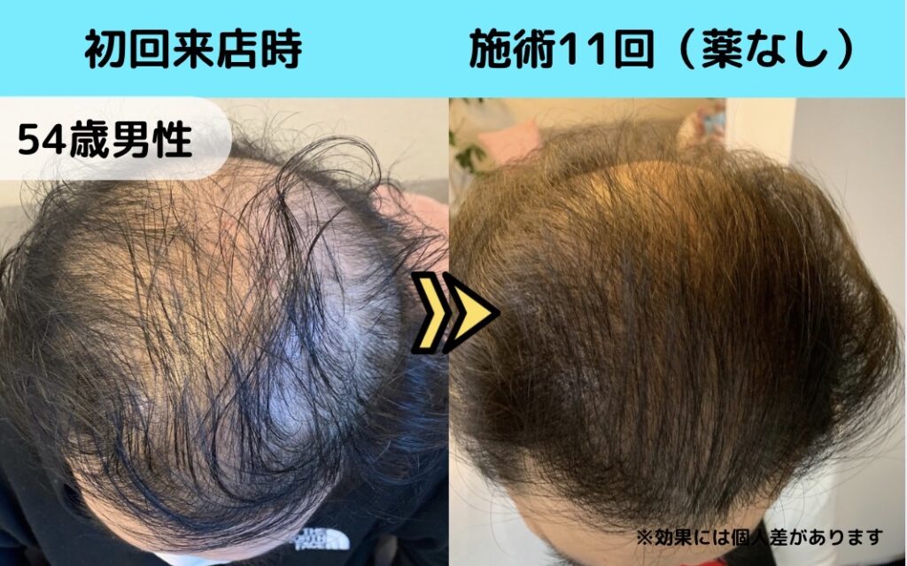 今回は、薬を使わずに発毛を目指された54歳男性の発毛症例をご紹介します。